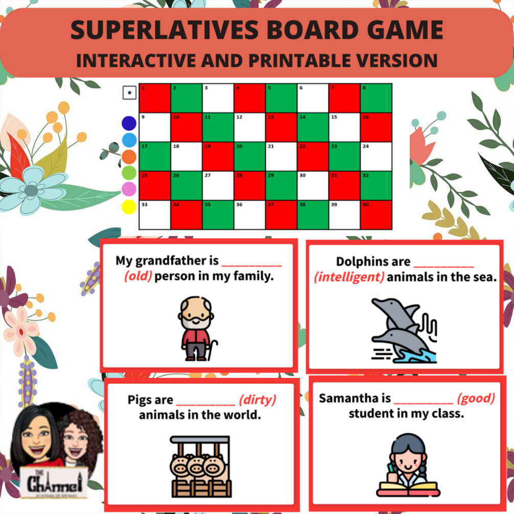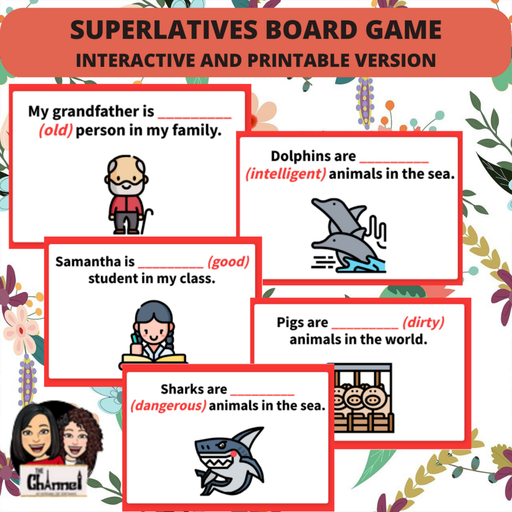 You'll get an interactive and printable board game to practice superlatives and make sentences.